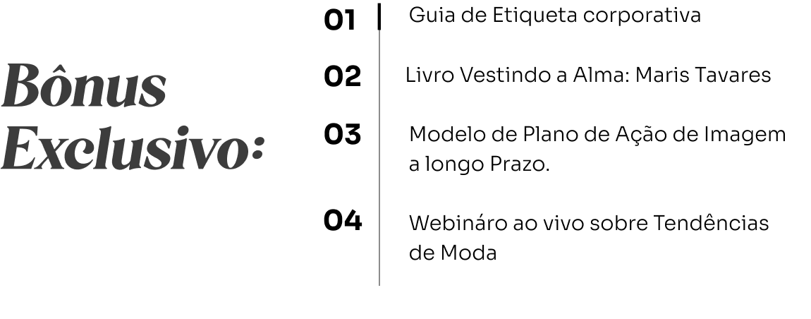 •⁠ ⁠Preparação para implementar mudanças imediatas e de longo prazo na sua imagem.